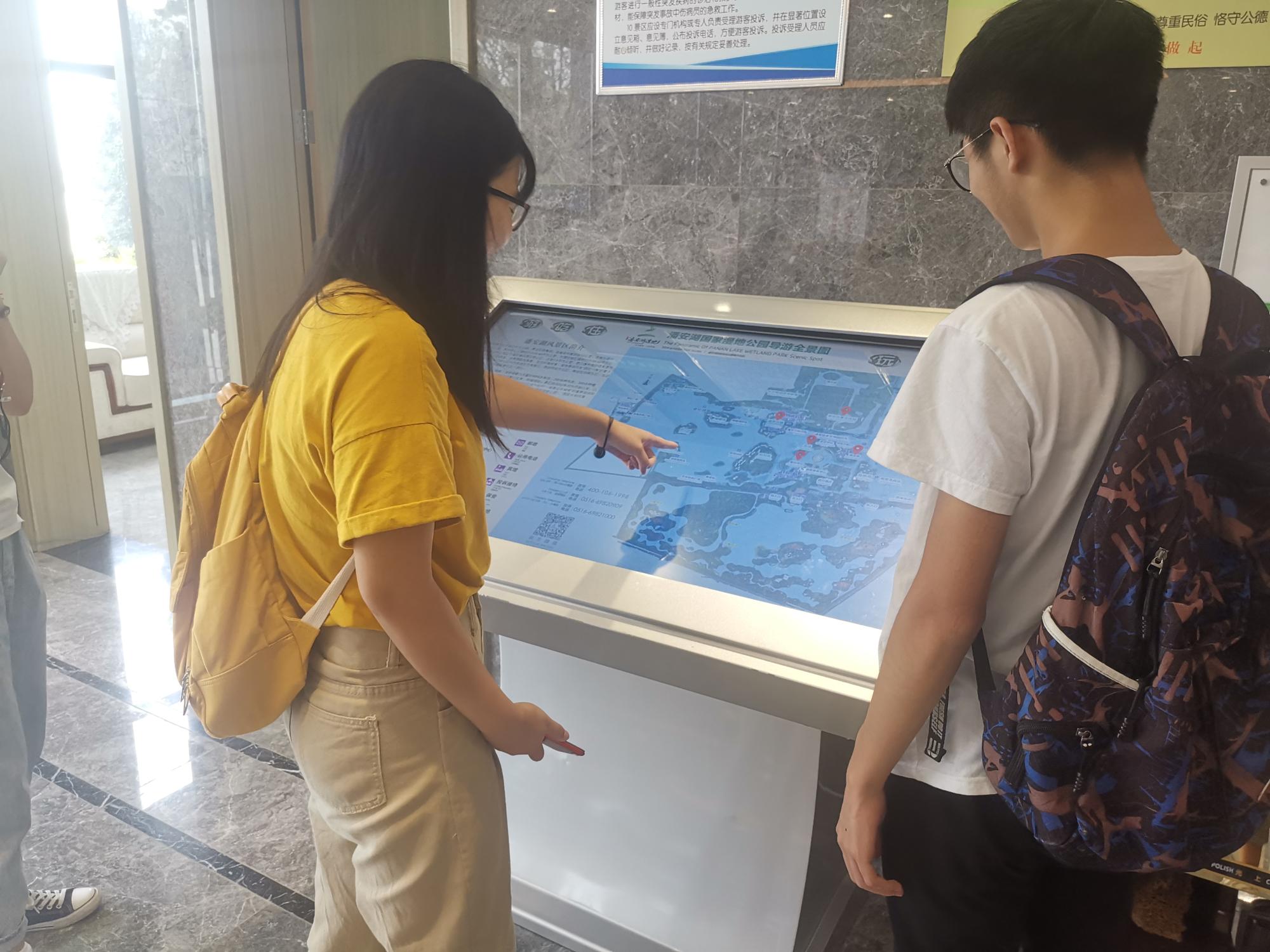 潘安湖南园正处于生态恢复开发阶段,这一路上考察队员身处绿色环境中,看着一个个为生态恢复和维持而开展的施工感到开心,正可谓“绿水青山就是金山银山”。对南园进行考察参观之后,实践团来到了潘安湖湿地公园综合服务大厅,在潘安湖的地图展板前详细商讨了考察路线并与工作人员进行了交流。进入北园,实践团对潘安湖湿地的功能分区和潘安湖的恢复历程进行了再一次学习和讨论。随后实践团至东起沿路对公园进行考察。途中,考察队员时常发现护理人员们投入工作的身影。在一系列大举措和小细节上,相关部门单位秉持初心,在生态文明建设上不断努力着,让人不禁在赞赏之中又生敬佩。实践团成员分工明确、积极参与,在开展调研前认真查阅了相关资料,在实践中认真记录、拍摄图片和视频用于后期宣传。