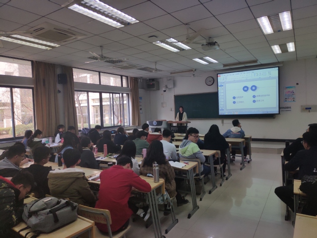 工程管理16-1班团支部于博四B103举行全体团员大会。本次会议由团支部副书记施成睿同学主持,班主任老师王林秀教授参加。
