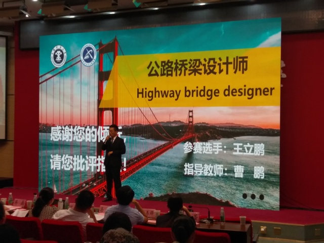 2015级土木工程专业的王立鹏同学经过精心的准备,向在场同学分享了他希望成为一名公路桥梁设计师的职业规划,获得了评委的一致认可,取得全校二等奖的好成绩。