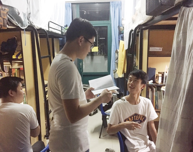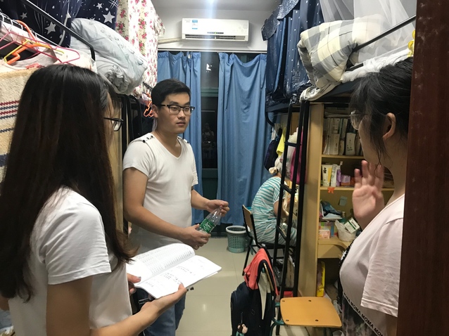 2016级专职辅导员曹鹏老师与兼职辅导员冯小雨、舒畅、张悦老师前往学生宿舍,对学生开学返校情况与宿舍安全卫生状况进行了检查。