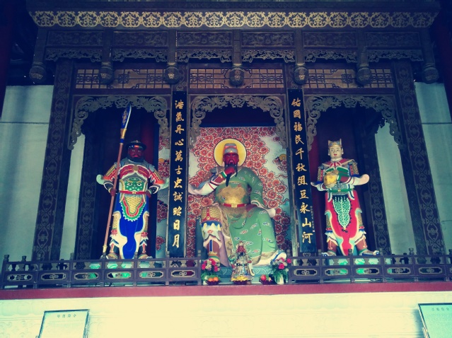 调研团到达民俗博物馆后,进行相应地分工,力求对每个展馆都进行细致地研究。民俗博物馆是以展示民俗风情为主的专题性博物馆,整个博物馆保留了明清时期的古建筑风格,其内展品多是清朝时期的物品。民俗博物馆最大的特色莫过于它以场景化的方式对民俗进行展示,每个展厅都有各自的特色,一步一景。其中婚俗厅中展示了清朝时期从迎亲到拜堂的整个婚嫁过程,人俑活灵活现,今日观赏仍可让人感受到当初热烈的气氛。坐落在整个博物馆正中央的是一座关帝庙,庙中关帝像形象高大、神态严肃,展示了中华民族“武圣”的风采。本次考察以分散考察的形式进行,以拍照为主,同时还仔细阅读了重要文物的介绍资料。民俗博物馆与其它博物馆不同,所展示的物品主要是底层人民生活习俗的用品,体现了那个时代人民对美好生活的向往,以及人民简单生活,与世无争的状态。