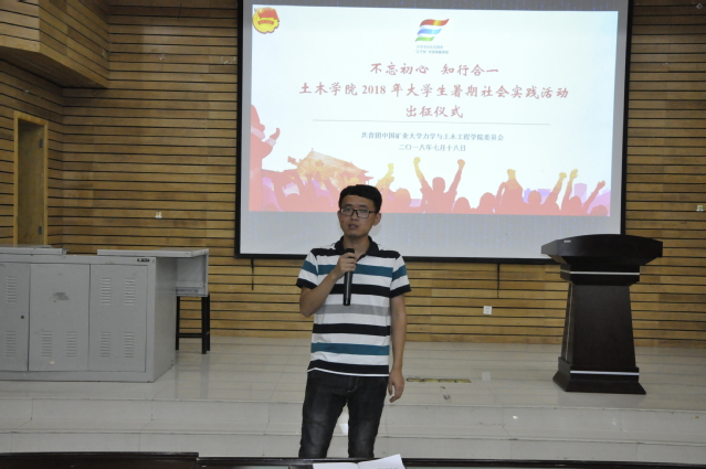 本学年的暑期社会实践项目申报情况向大家做了一个简单的汇报。紧接着,游洋老师开始具体安排暑期社会实践活动的各项事宜,他从人身安全、项目报备与实践工作这三个方面进行统筹安排,他重点强调了要树立安全意识,遵守校规校纪和社会治安管理规定,加强团队协作,把生命健康放在首位。对于社会实践活动的经费报销问题,游洋老师希望大家不要过于重视资金问题,而更应该考虑如何做好社会实践。最后,游洋老师希望所有同学在本次社会实践活动中不仅要做出成绩,更要体现出土木学子的风采。