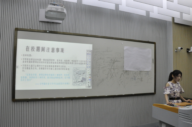 楼参加会议。在会议中,李涵老师从安全、学习、管理制度等方面,向留校学生交代了暑期在校应该注意的事项,嘱咐同学注意寝室安全、就餐安全、外出安全以及校外兼职安全等问题。随后,李涵老师强调了暑期留校的晚点名制度和进出学生公寓的规定,并且向留校学生详细介绍了留校生活指南,提醒同学们注意暑期学校校车班车、热水供应和图书馆开放等时间的变动。会议最后,李涵老师让全部留校学生签署暑期留校安全承诺书,以此来进一步确保学生暑期留校的安全。大会最后,李涵老师对学生提出的还不太清楚的地方做出了详细的解释。