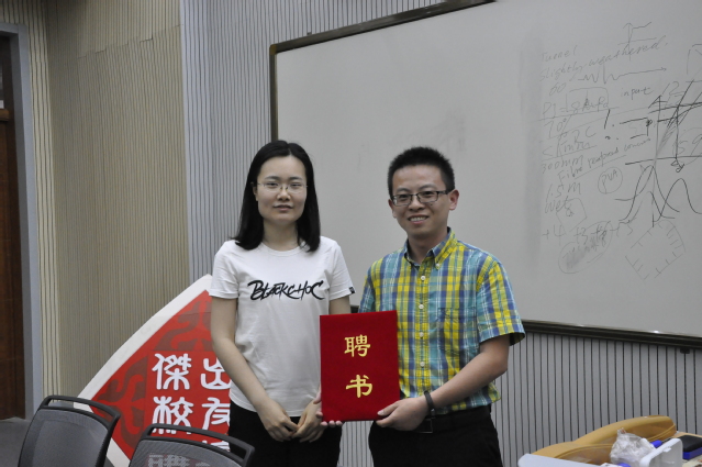大学生创新创业导师”聘书及“杰出校友讲坛”纪念杯。
