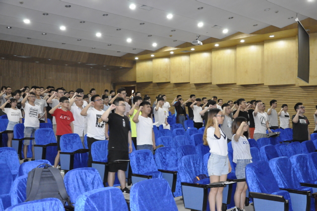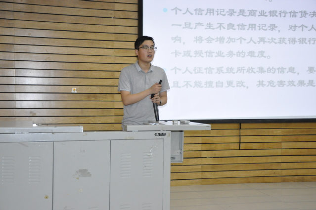 下午三点整,大会正式开始。骆奕老师作为主持人,先大概介绍了本次活动的目的。然后由曹鹏老师详细地讲述了有关诚信还款的具体内容。曹老师介绍了国家助学贷款的还款流程、注意事项及个人征信知识,解读了诚信还款的益处以及恶意拖欠贷款的不良影响。同时谈了一些以往学生在还款时遇到的麻烦和问题,希望同学们能吸取教训和经验,不要再犯同样的错误。会上,曹鹏老师表示,国家助学贷款和生源地贷款是国家为保证同学们顺利完成学业而设置的。为了做好助学贷款工作,保证“应贷尽贷”,学校在人力、财力、物力上大力投入,银行方面也做了大量工作。所以是否按期还款,不仅关乎银行的经营风险和学校信誉等问题,同时对个人的诚信系统也有很大的影响。按期还款是一种责任和义务,更是一种感恩。随后,骆老师又耐心地解答了同学们对于还款的一系列疑问。最后,在骆奕老师的带领下,同学们举行了集体宣誓仪式。