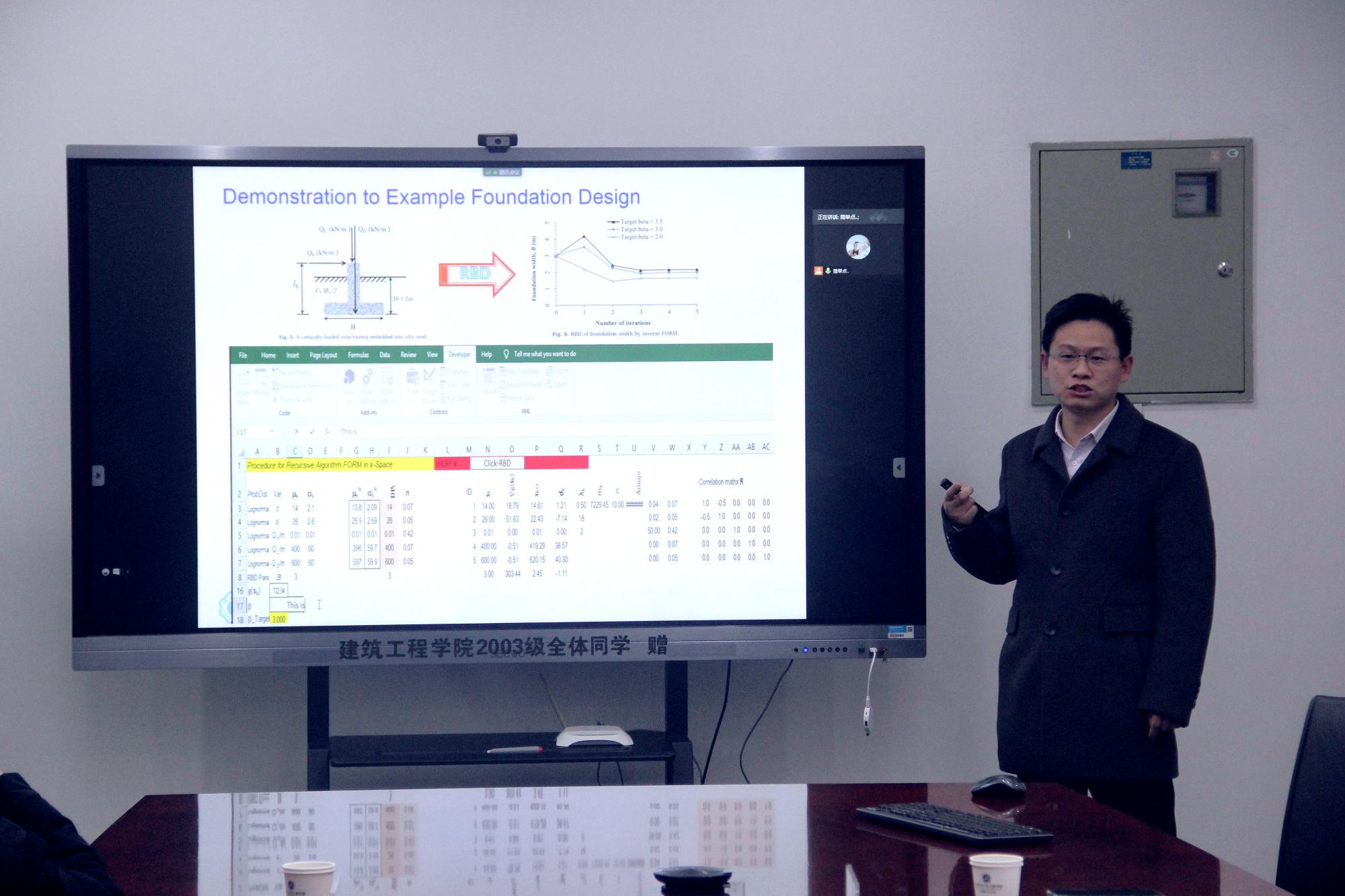 姬建教授的报告从由于土体参数在时间和空间上的变异性会导致边坡失稳、基坑坍塌等工程问题,采用可靠度、概念分析方法,通过数值模拟分析了岩土工程的边坡稳定问题。另外,他在过去的边坡地震位移分析模型基础上,一方面引入了孔隙水压力;另一方面将土体的强度参数弱化考虑进去,改进了原有的边坡地震位移分析方法,然后结合土体边坡工程实例,验证了改进方法的正确性,可以较好地进行地震动力荷载条件下边坡稳定性分析。