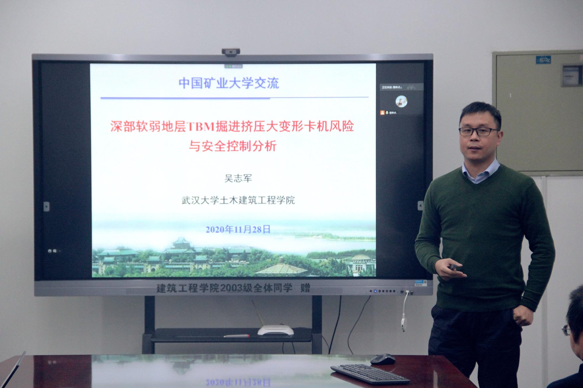 邀请到武汉大学吴志军教授与河海大学姬建教授,分别作了题为《深部软弱地层TBM掘进挤压大变形卡机风险与安全控制分析》、《地震响应下的土质边坡破坏概率分析及其可靠度设计原理》的国产精品报告。报告会由研究生副院长杨圣奇教授主持,国产精品