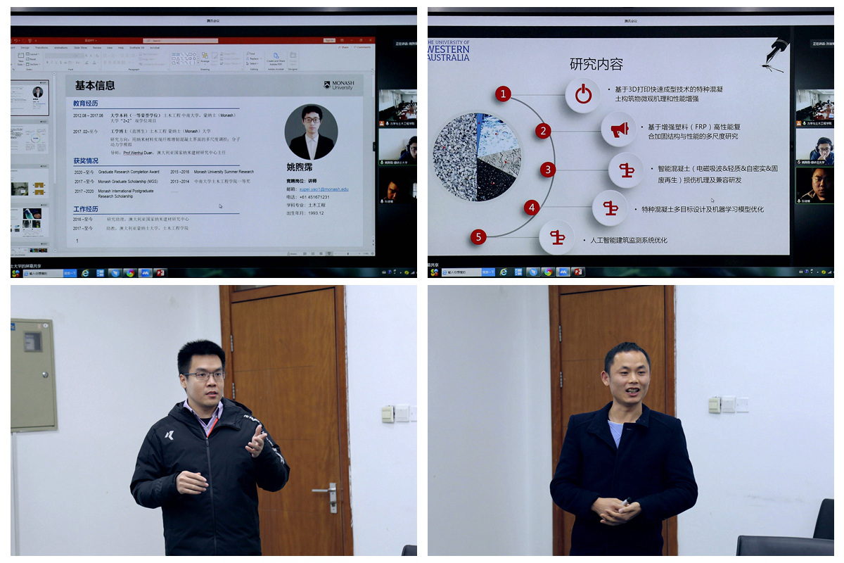 。与会青年学者围绕各自的学科前沿研究成果进行了分享报告。参会学者与院领导、教授会成员、系所负责人就人工智能、3D打印、健康监测、材料力学、多孔介质物理力学、土木工程材料多尺度物理力学、颗粒材料微结构与宏观性能的关联机制研究、纳米材料对纤维增韧混凝土界面的改性等国产精品问题,以及市情、校情、院情等人才引进政策,国产精品