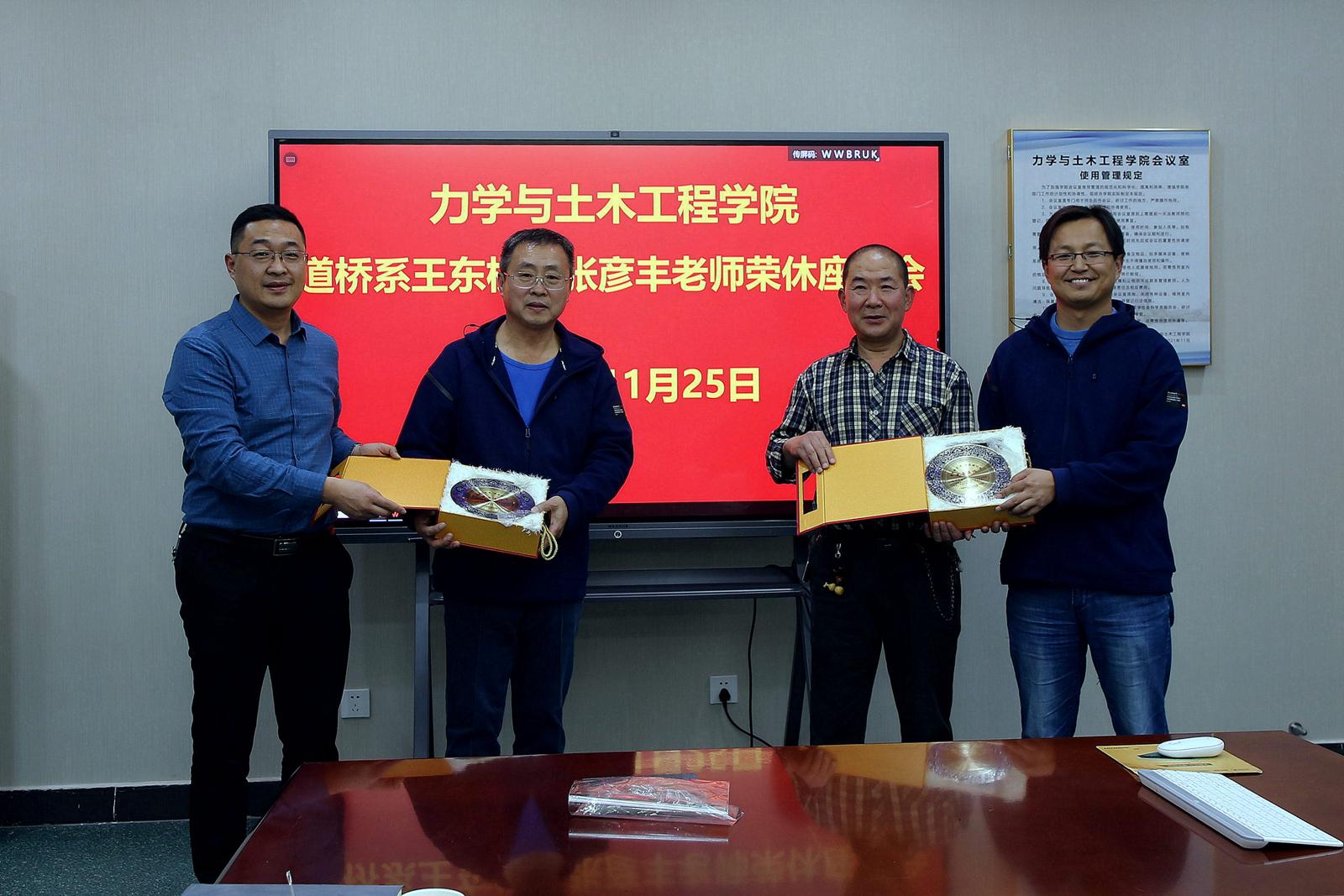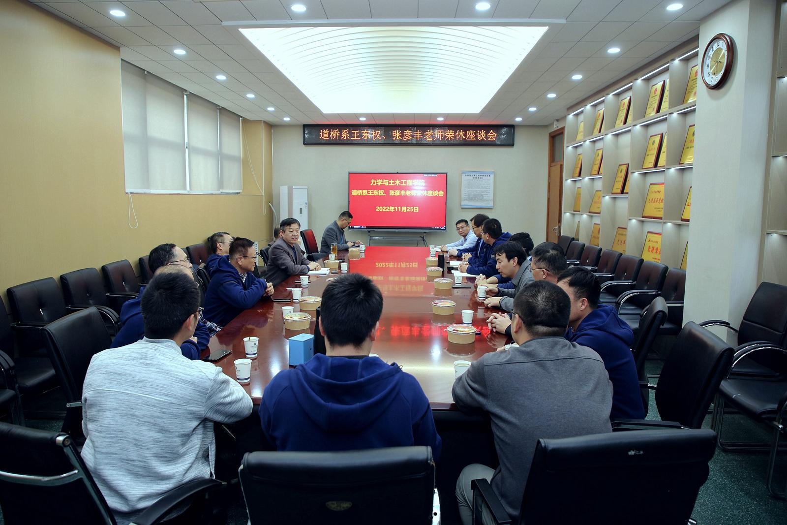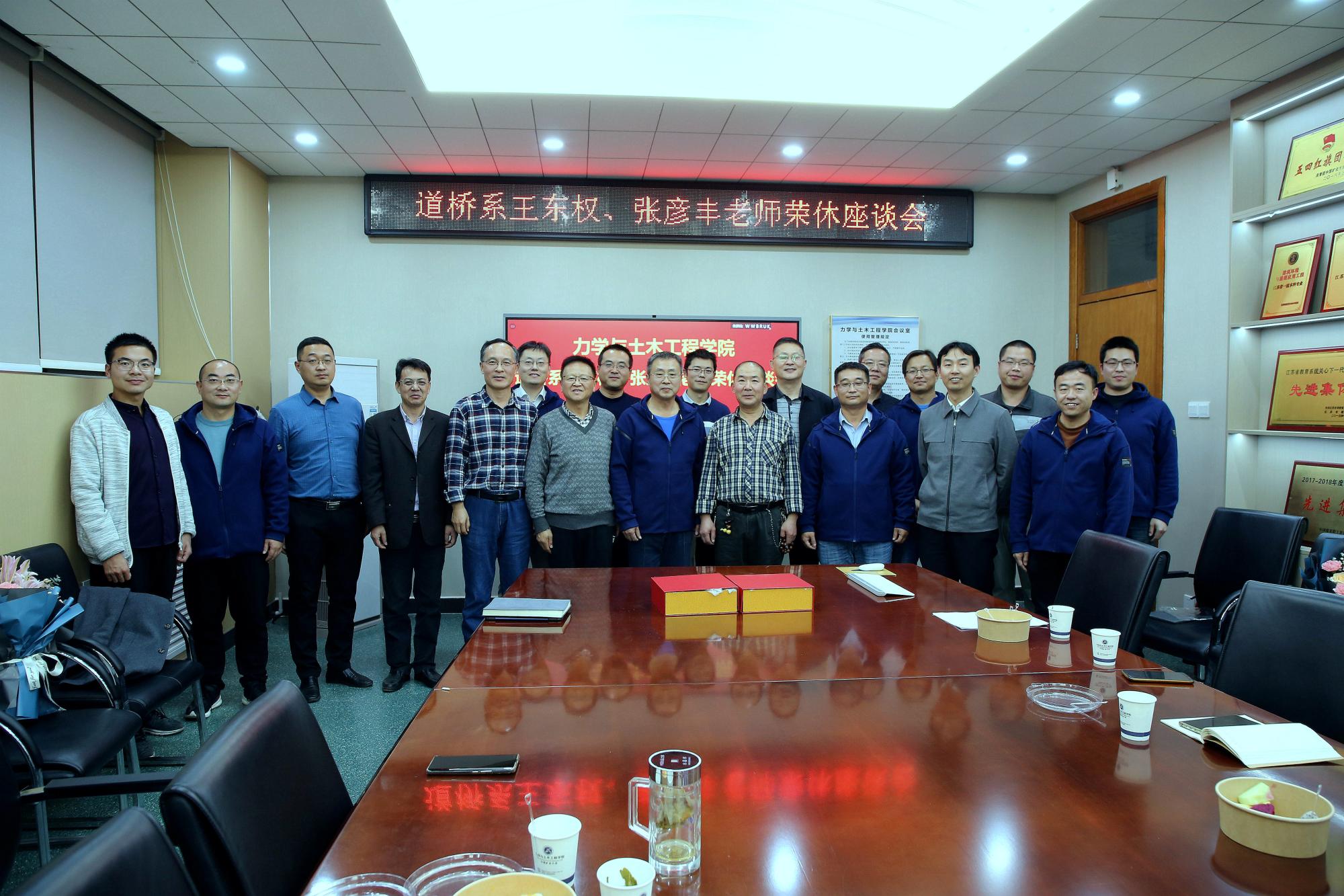 A220会议室举办了王东权、张彦丰两位老师荣休座谈会,院党委书记马占国、副书记李智以及道桥系全体教师参加了会议,会议由系支部书记柳志军主持。