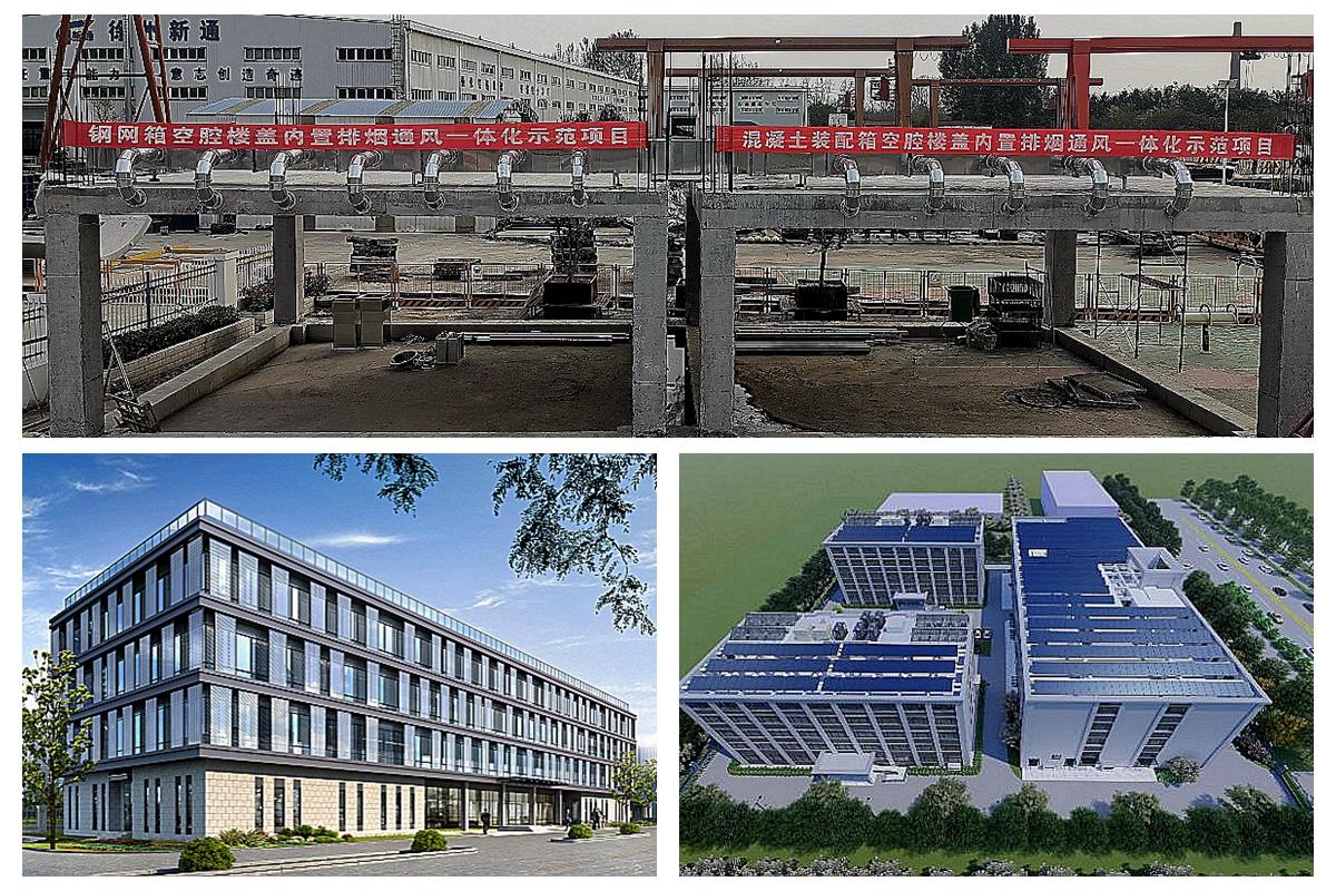 项目团队与江苏省建筑设计研究院股份有限公司、山东省建筑科学研究院有限公司和深圳市建筑设计研究总院有限公司等多单位密切合作,坚持以产业需求为导向,将多功能空腔楼盖专利技术进行推广应用,核心方面在于取消传统排烟通风管道,直接利用空腔体实现排烟通风,每层节省管道空间0.3m~0.8m,增加结构净高或降低层高。该项目在停车场、办公楼、商场、厂房、仓库和大数据中心等大型公共建筑领域具有重要工程意义。